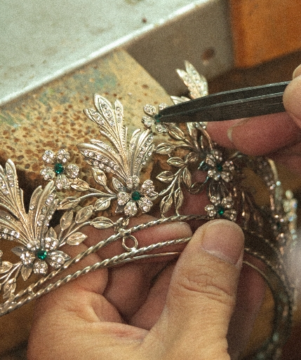Trabajamos siempre con plata de ley, todo hecho a mano en Sevilla para mantener viva la tradición andaluza. Así es como nacen piezas extraordinarias, diseñadas para elevar la belleza y celebrar momentos grabados en oro en el álbum de tu vida.