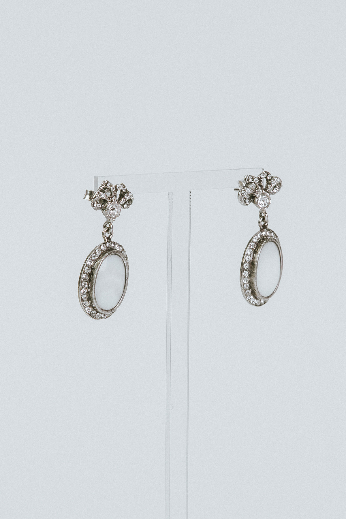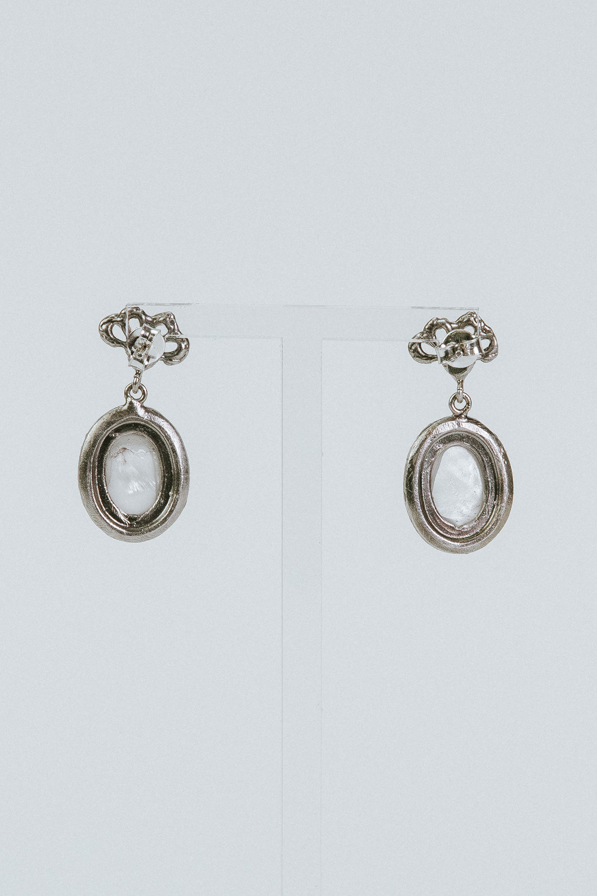 La belleza serena de estos pendientes en plata de ley y cristal austriaco se refleja en cada línea de su diseño. Piezas úncas creadas y realizadas a mano en el taller de Sevilla de Luis Miguel Ossorio.