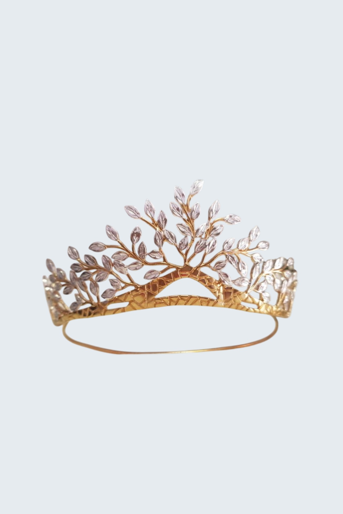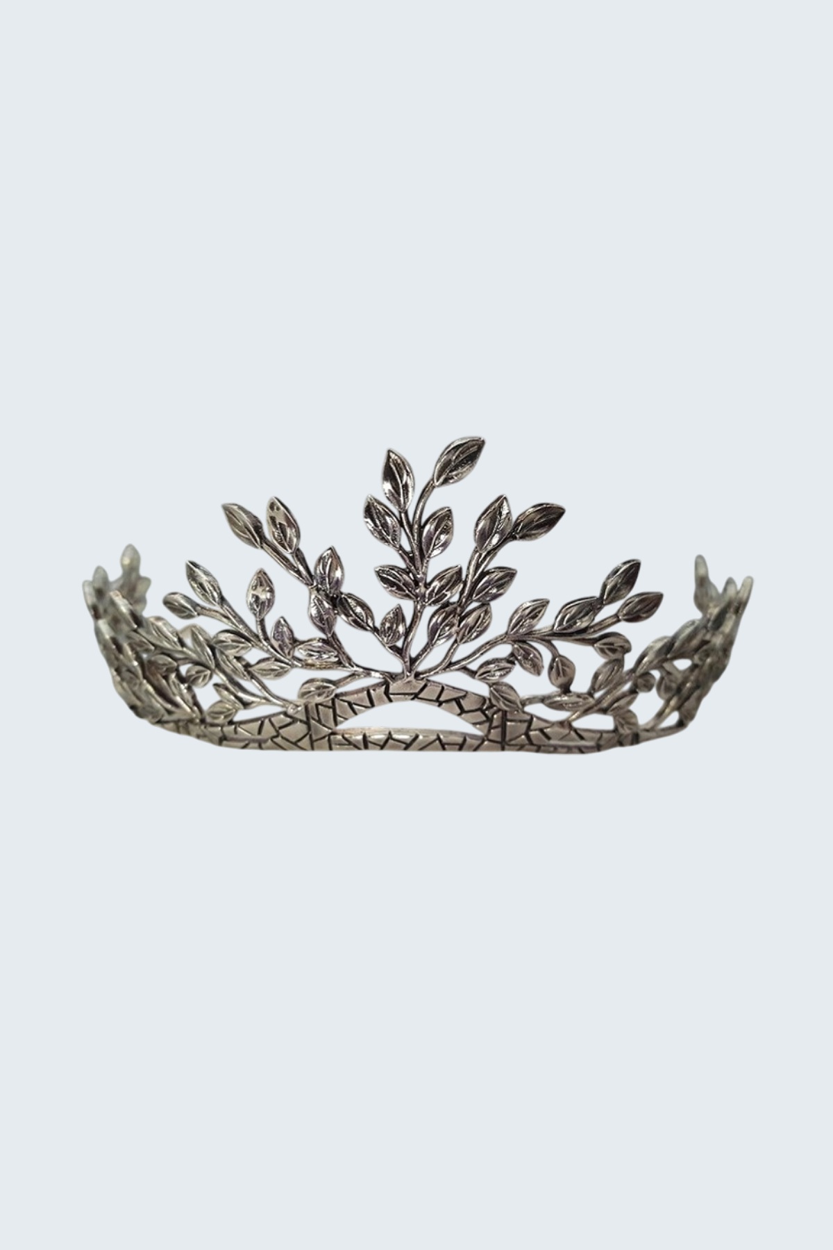 Tiara CARLOTA, una joya artesanal realizada en plata de ley, cuajada de delicadas ramas y hojas.